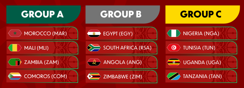 Teams are divided into six groups of four. Each team plays three matches in the group stage.